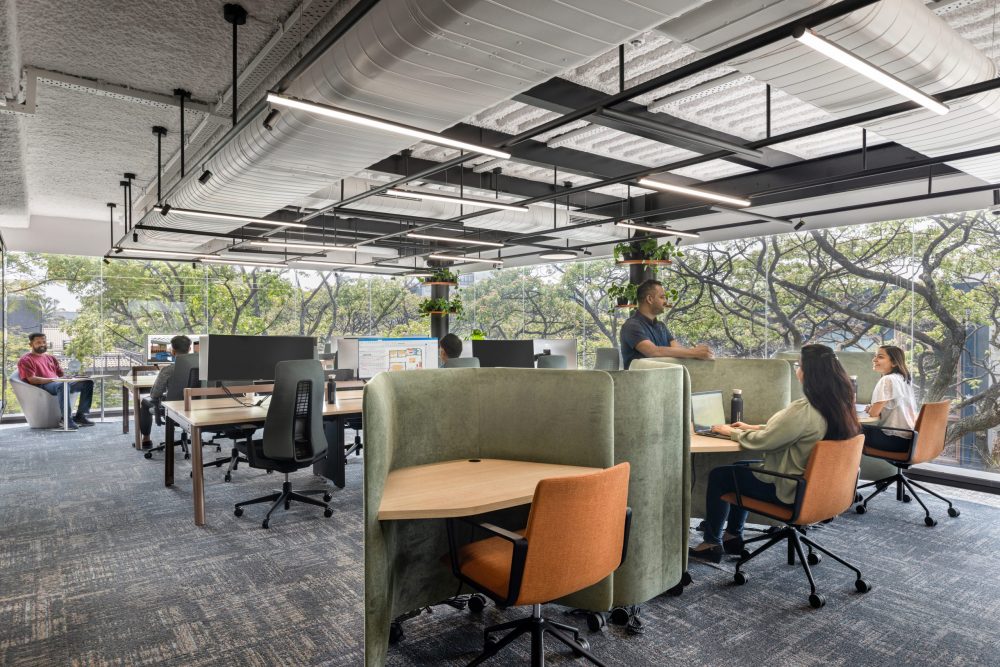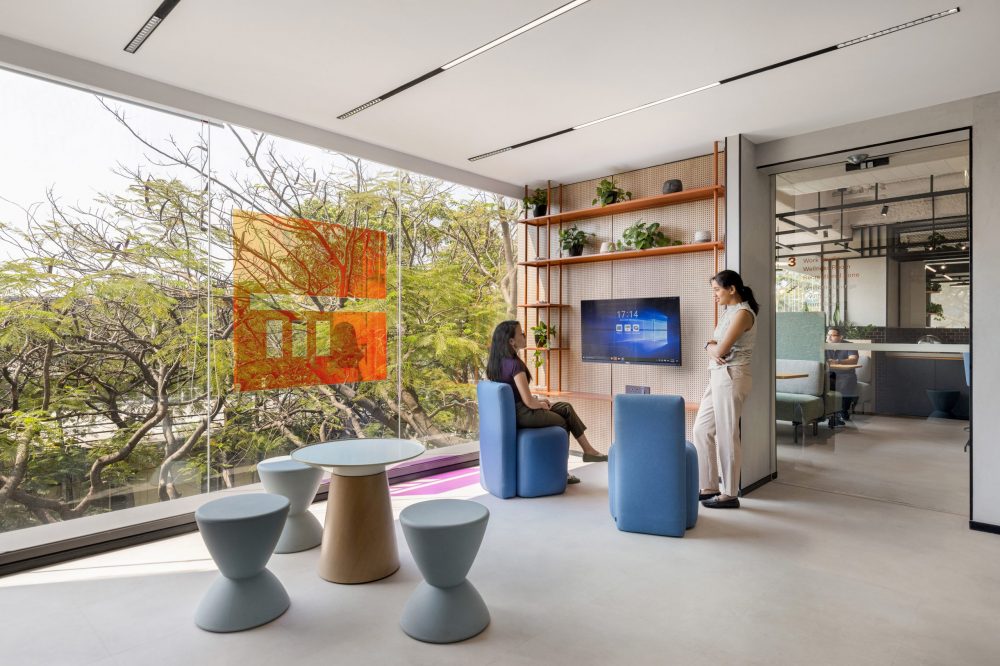 Bengaluru: Embracing its natural surroundings, this living lab features floor-to-ceiling windows framed by trees, creating a seamless connection between indoors and outdoors. Daylighting is available on 3 sides with appropriate shading. The space resonates with local heritage, engaging with local artisans who contributed to the lab through locally sourced textiles, kitchenware and other crafted elements to instill a sense of connection and representation while promoting circular practices. Certifications include: WELL Platinum (awarded), RESET Air (awarded), IGBC Green Interiors (pending), IGBC Health & Wellbeing (pending) and it is operating on green power.