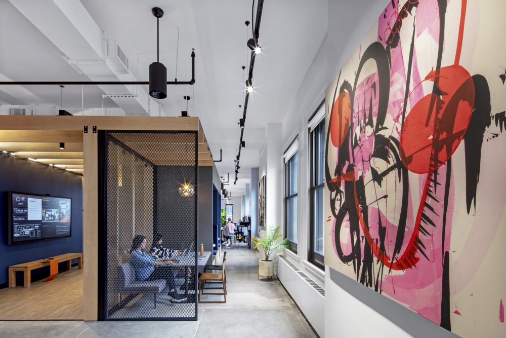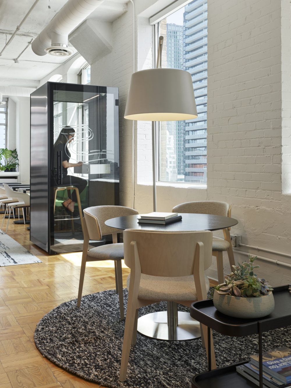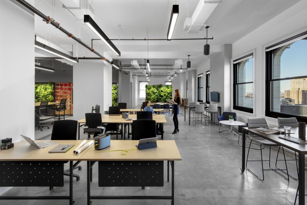 New York: The space can accommodate up to 75 people with 100% agile working, supported by access to rechargeable mobile battery packs for greater mobility. The office is equipped with a VR Lab to work through design solutions, a 3D printer to prototype architectural elements, and an Innovation Lab to strategize with design teams and clients.