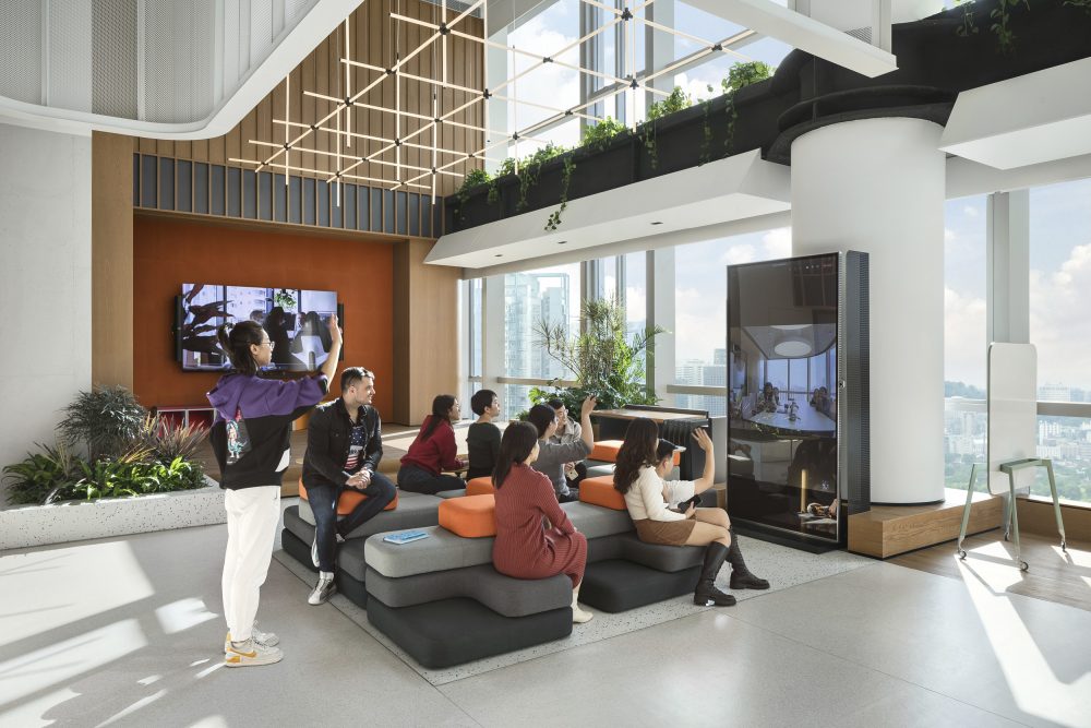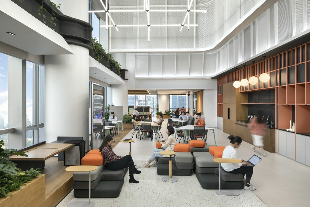 Shenzhen: M Moser designed its Shenzhen office around a central question: how can we create a workplace where people feel comfortable, safe and ready to perform at their best work? Staff engagement programs revealed several key considerations: flexibility, collaboration, autonomy, socializing and wellness. Bringing in smart technologies and prioritizing sustainability and wellness, the space supports work in a safe and healthy environment with a WELL Health-Safety Rating (HSR).