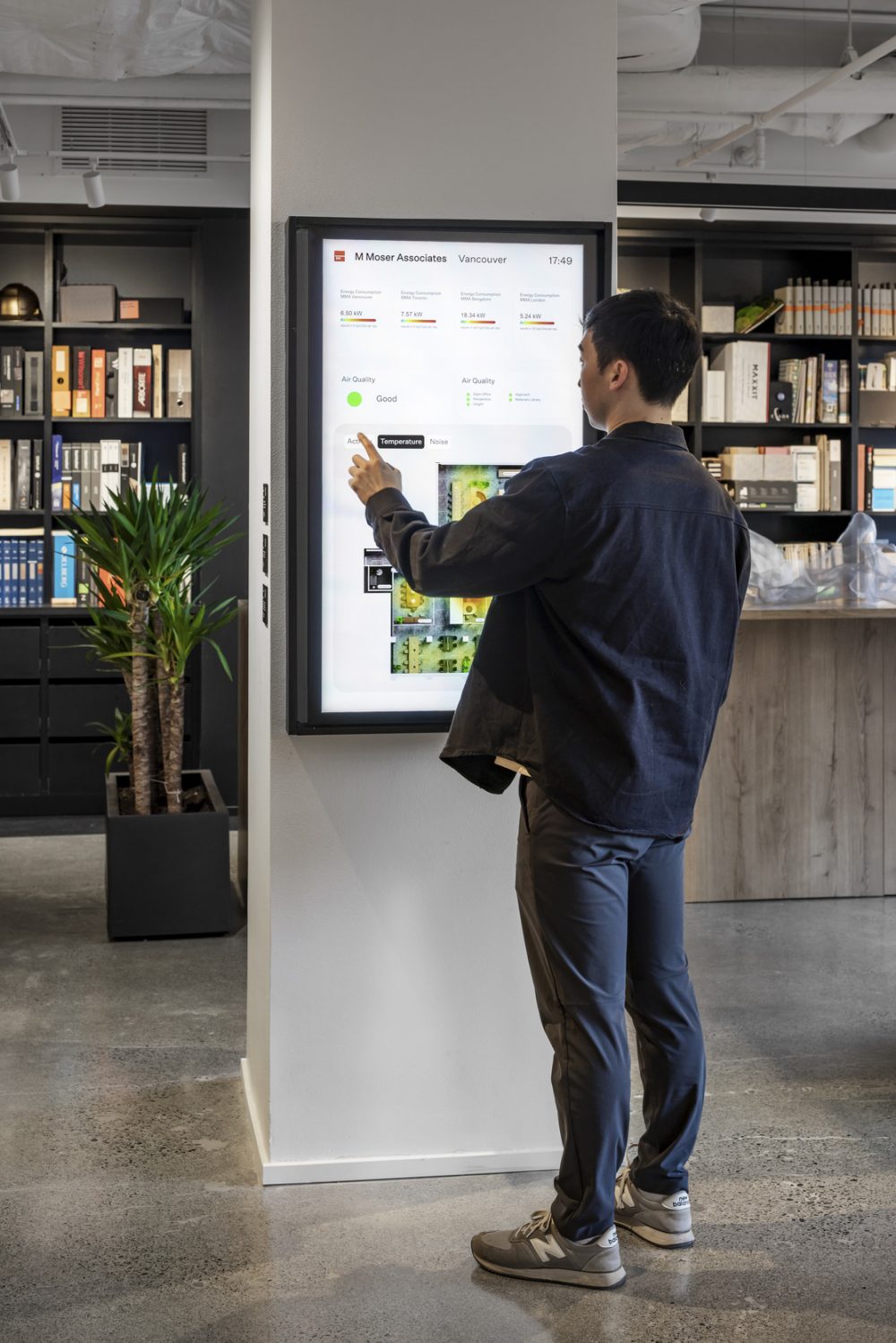 Vancouver: Strategically placed sensors continuously monitor various factors – including particulate matter, CO2, PM1, PM2.5, PM10, TVOC, light levels, light color, motion, occupancy, sound levels and volatile organic compounds (VOCs). Dashboards provide real-time information, indicating when the air quality is at its healthiest. This proactive approach to cleaner air enhances decision-making, promotes creativity and boosts overall productivity.