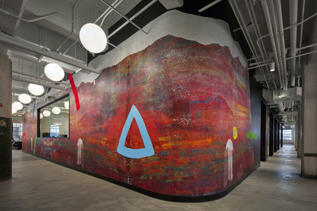 With HOK’s move to DTLA’s Arts District, they found it important to celebrate the spirit and history of the neighborhood by incorporating the work of local artists in our space. We worked with art consultant Tre Borden & Co. to source proposals from local artists, ultimately commissioning a custom mural and curating a collection of rotation pieces to be featured in the lobby. The mural, by Adee Roberson, captures the studio’s view of the San Gabriel Mountains to the north, bringing the scenery into the space through an abstract array of bright colors and textures.