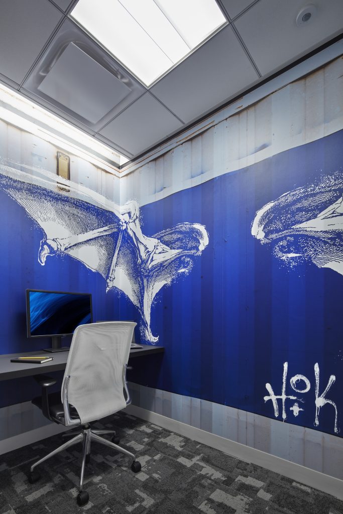 HOK’s relocation to the Arts District underscores their innovative, user-centric design approach and this transition into downtown’s creative heart has infused their work with fresh energy and inspiration. Central to HOK’s philosophy is the design of inclusive, neurodiverse work environments where everyone can thrive. In their new office, HOK designed floating workspaces—flexible areas that are not assigned but chosen—catering to a diverse spectrum of sensory needs. These areas range from serene spaces to sensory-rich zones, supporting a hybrid work model.