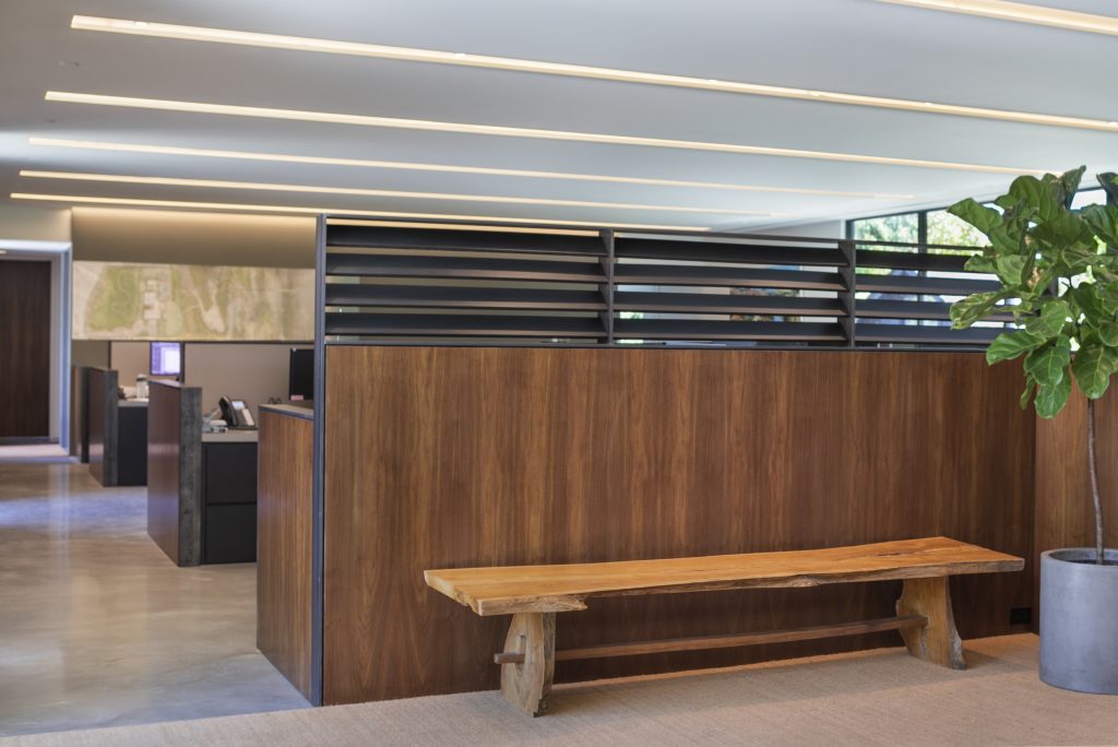 Because Chris LaGuardia had a personal connection to every member of the design team, the space feels at once very polished and professional but also personal. Chris selected mid-century modern sculpture done by his friend Dick Shanley and abstract paintings by his friend Paton Miller to add color and sophistication to the office, balancing its emphasis on the outdoors.
