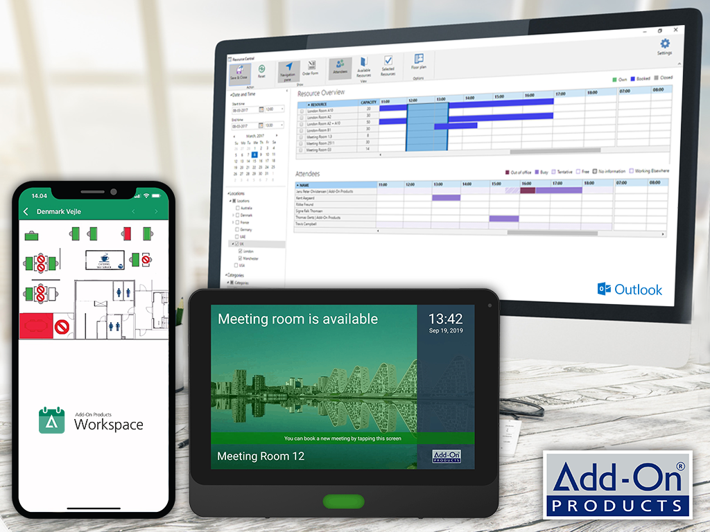 - book desks, conference rooms or parking spaces in advance or ad-hoc