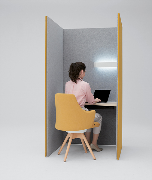 Drape creates quiet, private work pods that are perfect for touchdown work or making phone calls. The panels, available in two heights, are constructed to absorb sound and are covered with PET felt or fabric. Drape is designed to be compact with a small footprint but still provides maximum privacy by blocking the line of sight.