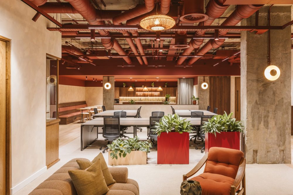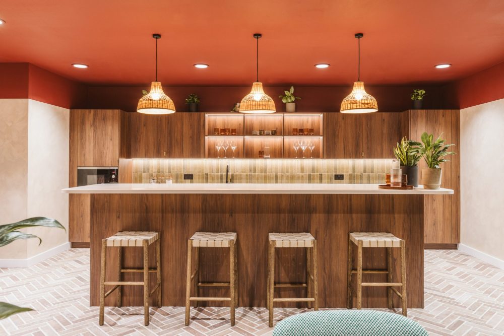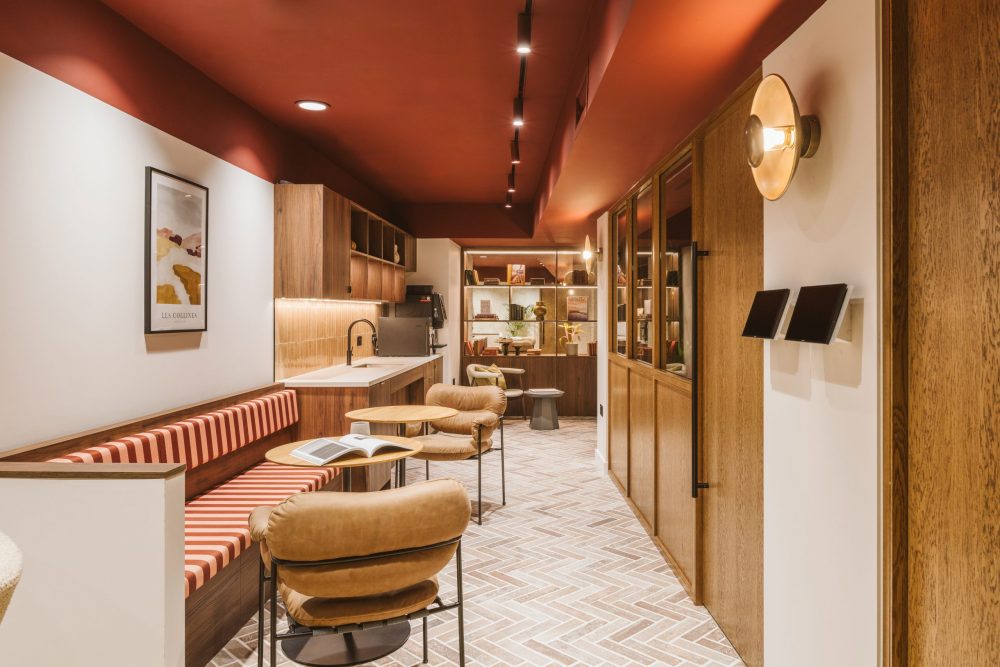 Achieving a ‘best-in-class’ co-working space required invention as well as function, with the use of striking finishes such as tiling and biophilic design. With tones of burgundy and scarlet, alongside luxurious woods seeded throughout, the space is a modern take on commercial fit-outs, stepping away from more conventional design choices, for something more sensory.