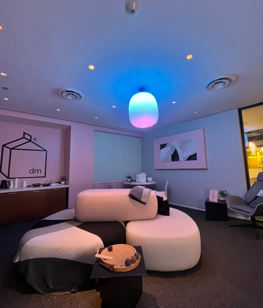 Circadian lighting and audio immersion in this wellness lounge was a welcome retreat from the busy Neocon rush.