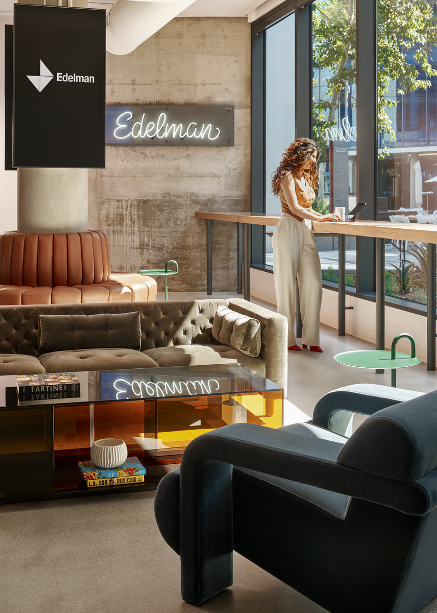 Edelman Los Angeles is a new destination for staff and clients that flexes between office functions, meetings, and industry events. Designed by Gensler, the uniquely planned space supports the choice and well-being of Edelman employees while building client relationships through a hybrid work and play environment that resembles a mid-century modern lounge more than a corporate office.