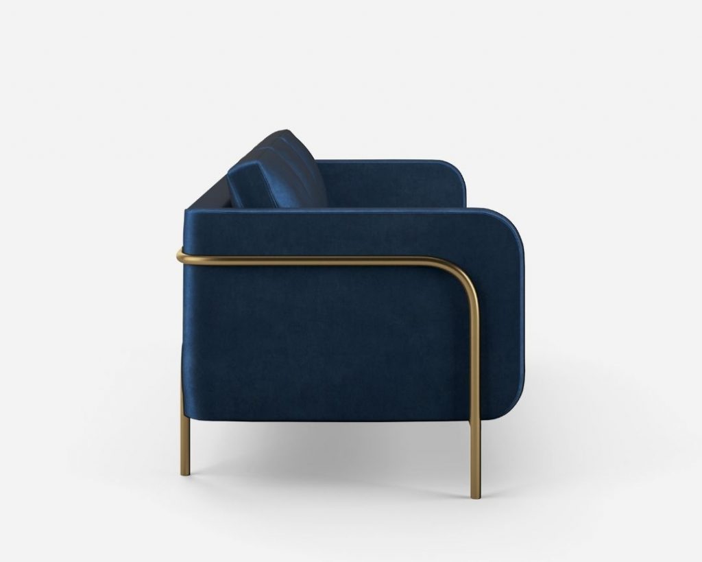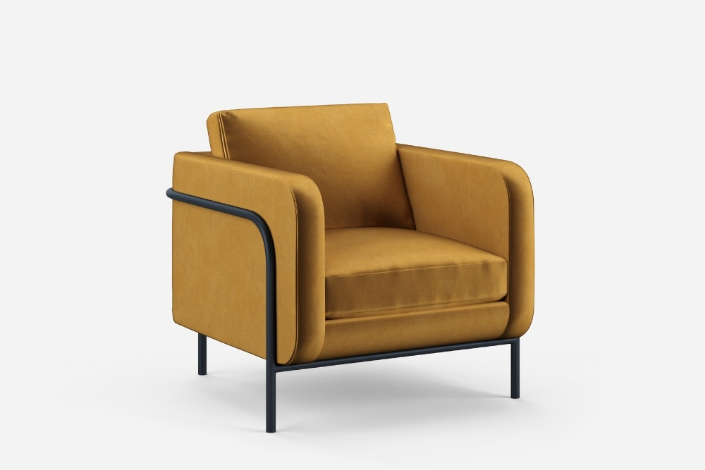 The Bend’s tubular steel exterior frame wraps its back and arms making it an ideal match for an open space, where it can be admired from all angles. Curves at the top and bottom of the arms flow into the curved apron below the seat for visual continuity. A bench seat cushion elongates the design and keeps the focus on its curves.